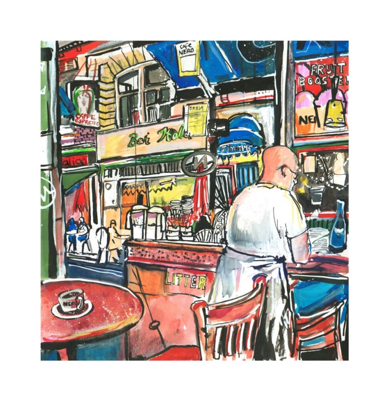 C Nero is an art print by Anna-Louise Felstead, a contemporary British artist known for her vibrant and dynamic illustrations. Felstead’s work captures the lively atmosphere of urban life with expressive lines and bold colour.