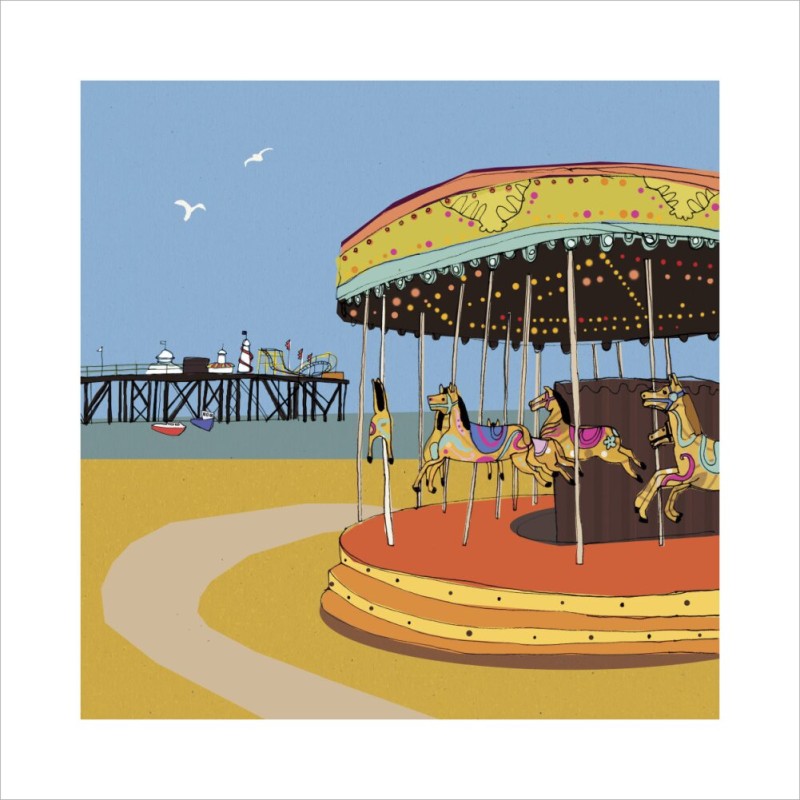 a name="google-site-verification" content="uRXT4bnBOJdBFNRNXY2TBOQ1ANGHJ8tdYa7DM2dJk3c" /> Carousel with Pier Art Print – Louise Cunningham Poster