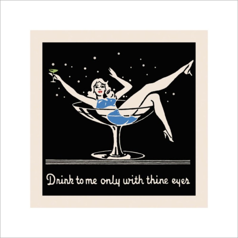 The "Drink to Me Only with Thine Eyes" retro art print for cocktails is a charming and nostalgic piece that blends classic literature with a vintage cocktail theme. This art print features a whimsical and stylish design that evokes the elegance of a bygone era, perfect for home bars, kitchens, or dining areas. It adds a touch of sophistication and fun, making it an ideal decor piece for those who appreciate both classic poetry and vintage cocktail culture.