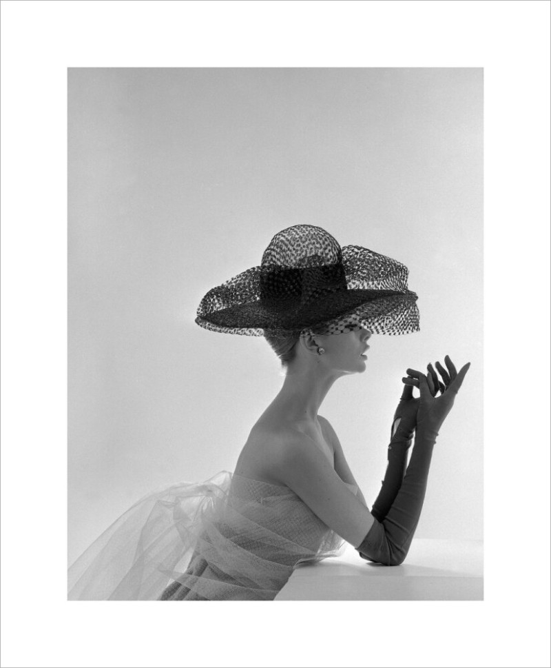 In a photograph featuring Jean Shrimpton wearing a hat by Madame Paulette, the image would likely be a stunning black-and-white portrait. Madame Paulette, a famous milliner, was known for her exquisite and often dramatic hat designs, which perfectly complemented the high fashion of the time.