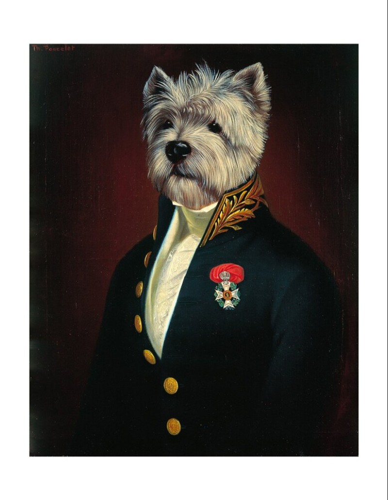 Add a touch of humour and sophistication to your space with The Officer's Mess by Thierry Poncelet. Known for his signature style of reimagining classical portraiture with animal subjects, Poncelet brings charm and wit to this print, depicting noble dogs dressed in formal military attire, enjoying a gathering in an officer’s mess. With fine attention to detail, Poncelet masterfully blends traditional portrait techniques with whimsical elements, creating a piece that is both elegant and amusing.