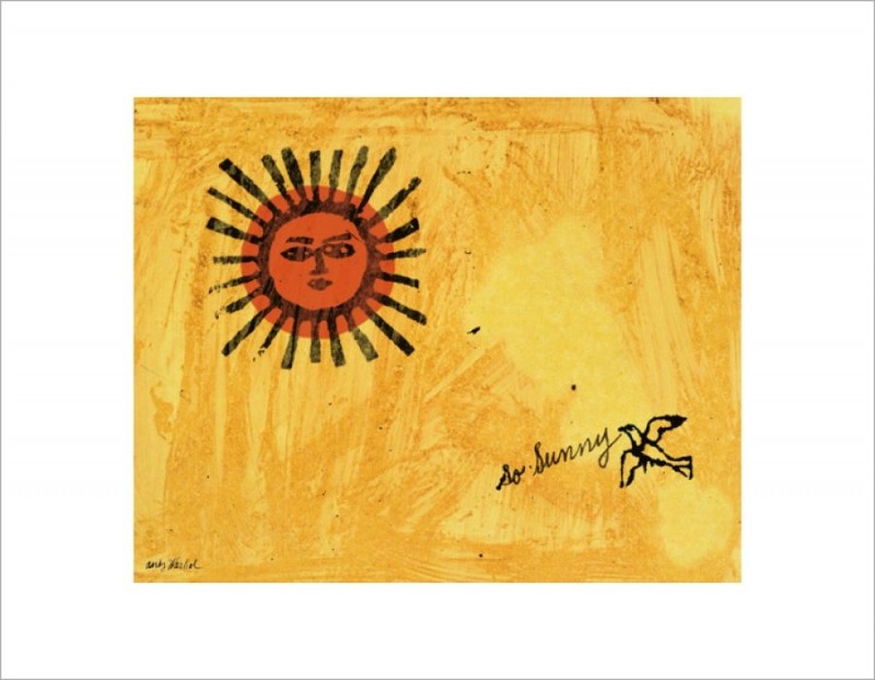 "So Sunny c. 1958" is a lesser-known yet captivating piece by Andy Warhol. Created during the late 1950s, this artwork reflects Warhol's early experimentation with techniques and themes that would later define his career. The print features a vibrant and cheerful depiction of a sunny scene, capturing the essence of warmth and happiness. The use of bright colours and playful composition showcases Warhol's evolving style and his ability to infuse everyday scenes with a sense of wonder and delight.