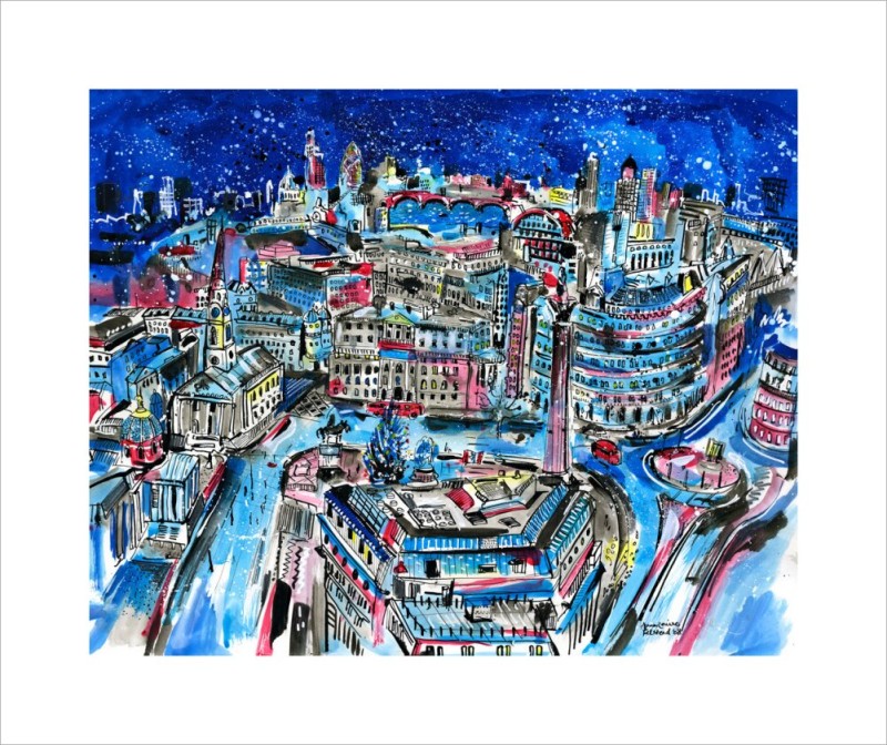 Trafalgar Square" is an art print by Anna-Louise Felstead, a contemporary British artist known for her lively and colourful depictions of iconic urban scenes. Trafalgar Square, located in the heart of London, is one of the city's most famous landmarks, known for its rich history, grand architecture, and cultural significance. Felstead’s artistic interpretation of this renowned location captures the vibrancy and energy of Trafalgar Square, making it a standout piece in any collection.