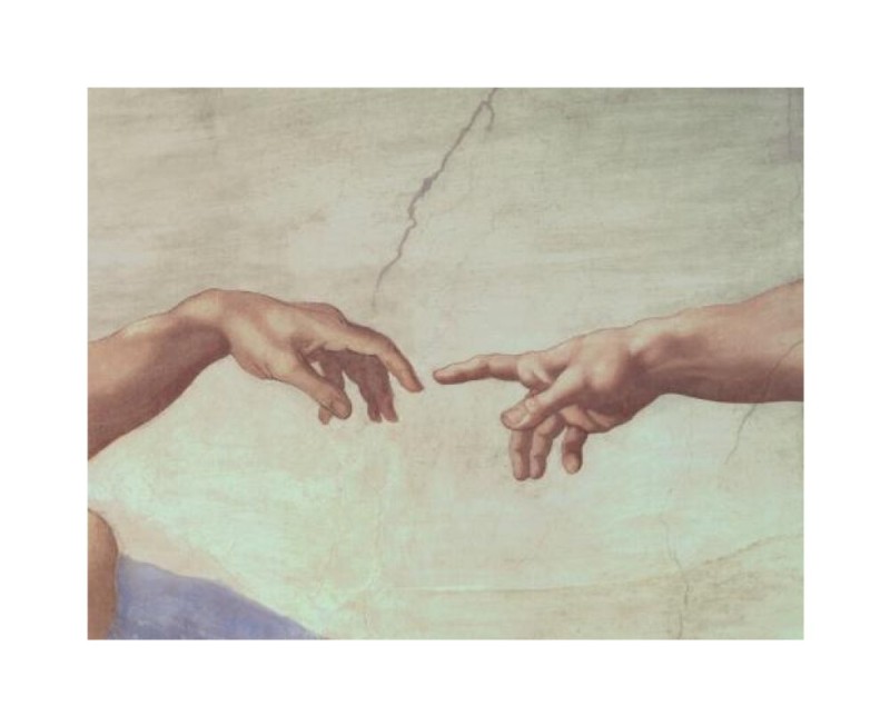 This stunning art print captures one of the most iconic moments in Western art history—the touching hands from Michelangelo’s renowned Creation of Adam fresco, painted on the ceiling of the Sistine Chapel. This detail, symbolising the moment of divine life being passed from God to Adam, is a powerful depiction of creation, connection, and humanity. Michelangelo’s masterful rendering of the human form, combined with the emotional depth of this detail, makes it a timeless piece of art that transcends centuries.