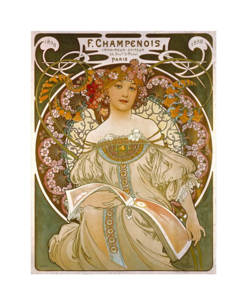 Immerse yourself in the elegance of Art Nouveau with this art print of Alphonse Mucha’s F. Champenois, Publisher, 1898 Art Poster Celebrating the iconic collaboration between Mucha and the prominent French printer F. Champenois, this artwork is an exquisite example of Mucha’s signature style, featuring intricate patterns, flowing lines, and a beautiful portrayal of a graceful woman surrounded by decorative elements. This print encapsulates the decorative beauty and sophistication that define the Art Nouveau era.