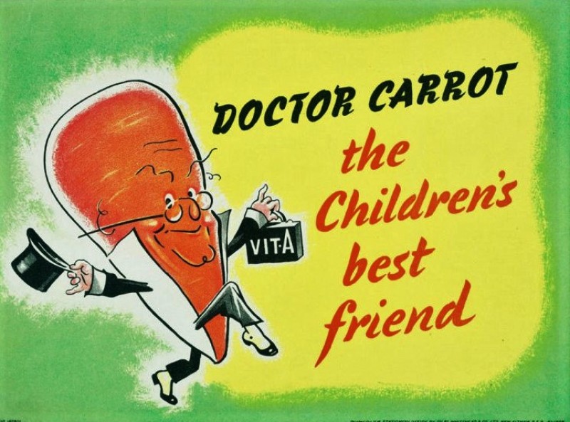 "Doctor Carrot - the Children's Best Friend" is an iconic piece of World War II propaganda art from Britain, encouraging children to eat more carrots. The character of Doctor Carrot was part of a campaign by the Ministry of Food to promote healthy eating and supplement rationed diets during the war. This charming and nostalgic art print features Doctor Carrot, a friendly anthropomorphic carrot, and is perfect for vintage art enthusiasts and collectors of historical memorabilia.