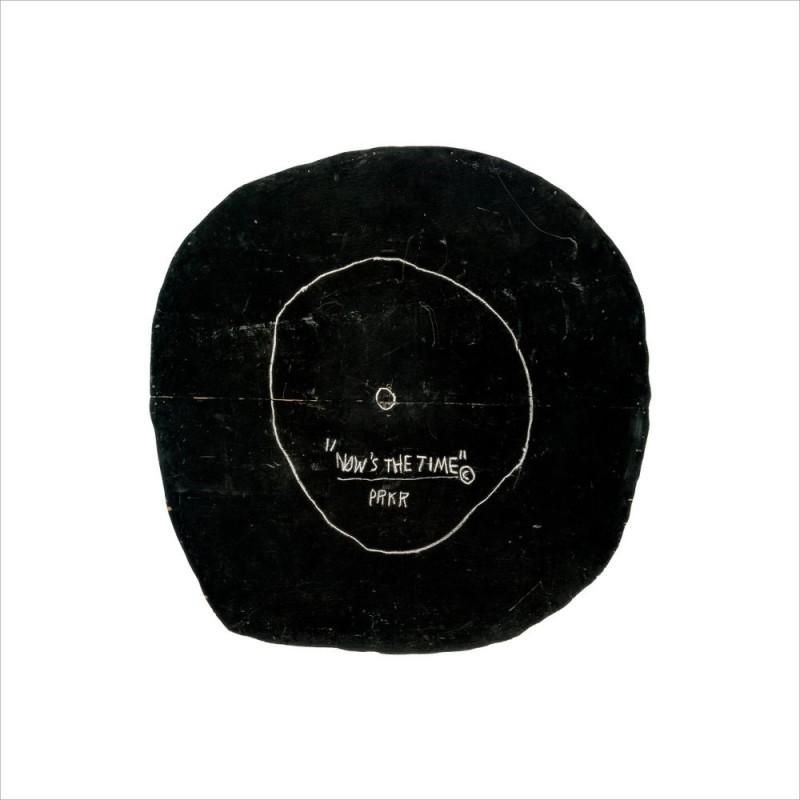 Cut from a large plywood disk, 'Now's the Time' mimics a vinyl pressing of the jazz legend Charlie Parker's album of the same name.