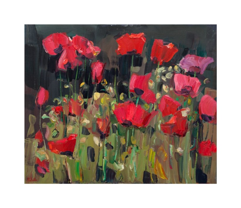 Poppies in the Garden Art Print by James Fullarton captures the beauty and vibrancy of blooming poppies in a sunlit garden. Known for his expressive brushwork and bold use of colour, Fullarton brings this floral scene to life, portraying the delicate flowers with rich, textured strokes that convey the movement and energy of the garden. The bright reds of the poppies contrast beautifully against lush green foliage, creating a dynamic composition that evokes the warmth and vitality of nature in full bloom. This striking floral artwork is perfect for adding a touch of nature and color to any interior, whether in a contemporary or traditional space.